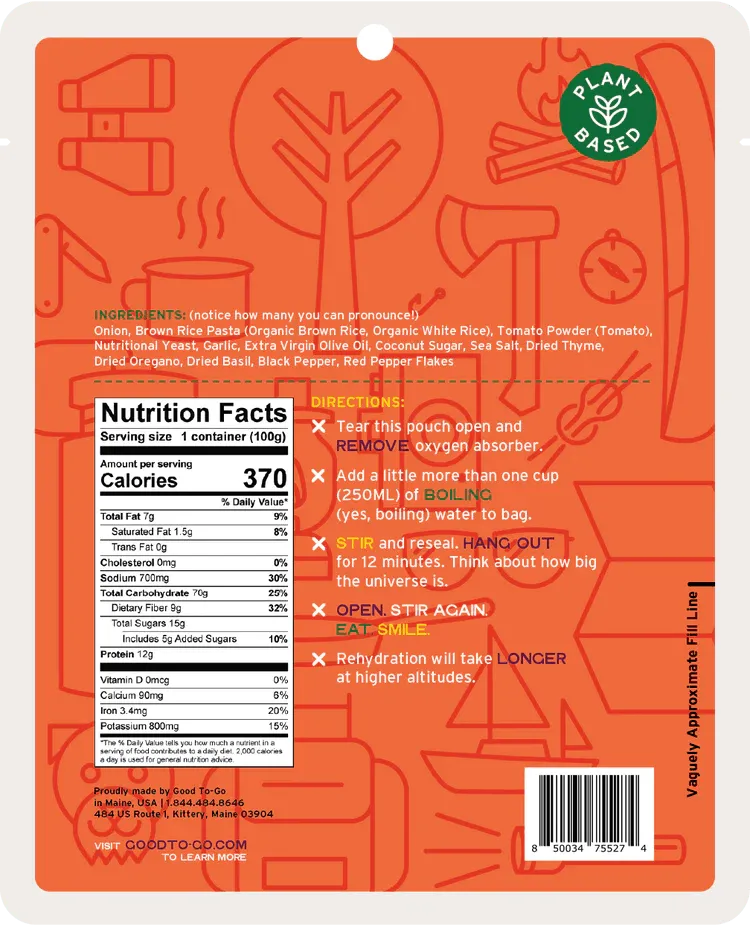 Good To-Go | PASTA MARINARA - 1 Serving Pouch is backordered and will ship as soon as it is back in stock.