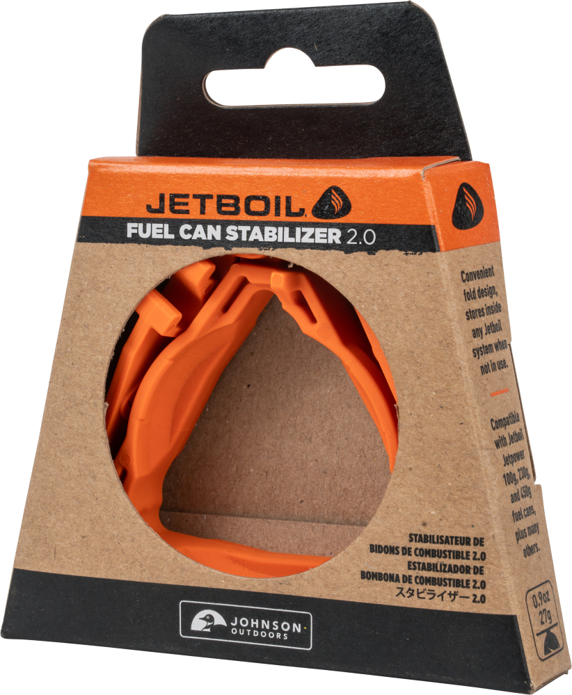 Steady your Jetboil on uneven surfaces with the Jetboil Fuel Can Stabilizer 2.0. The stabilizer attaches to the bottom of Jetboil fuel canisters to provide adjustable support on rocks, dirt, or other bumpy surfaces. The updated 2.0 version snaps to the burner base for easier packing. Can be used with all JetPower 100g, 230g, and 450g fuel canisters. Weighs 0.9 ounces.