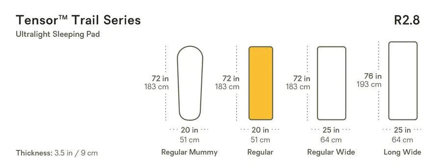Improving on the original, best-selling Tensor line, Tensor™ Trail offers versatile warmth for three-season adventures where weight is the top priority. Designed to take you from spring to fall, it keeps nights restful and packs up light.