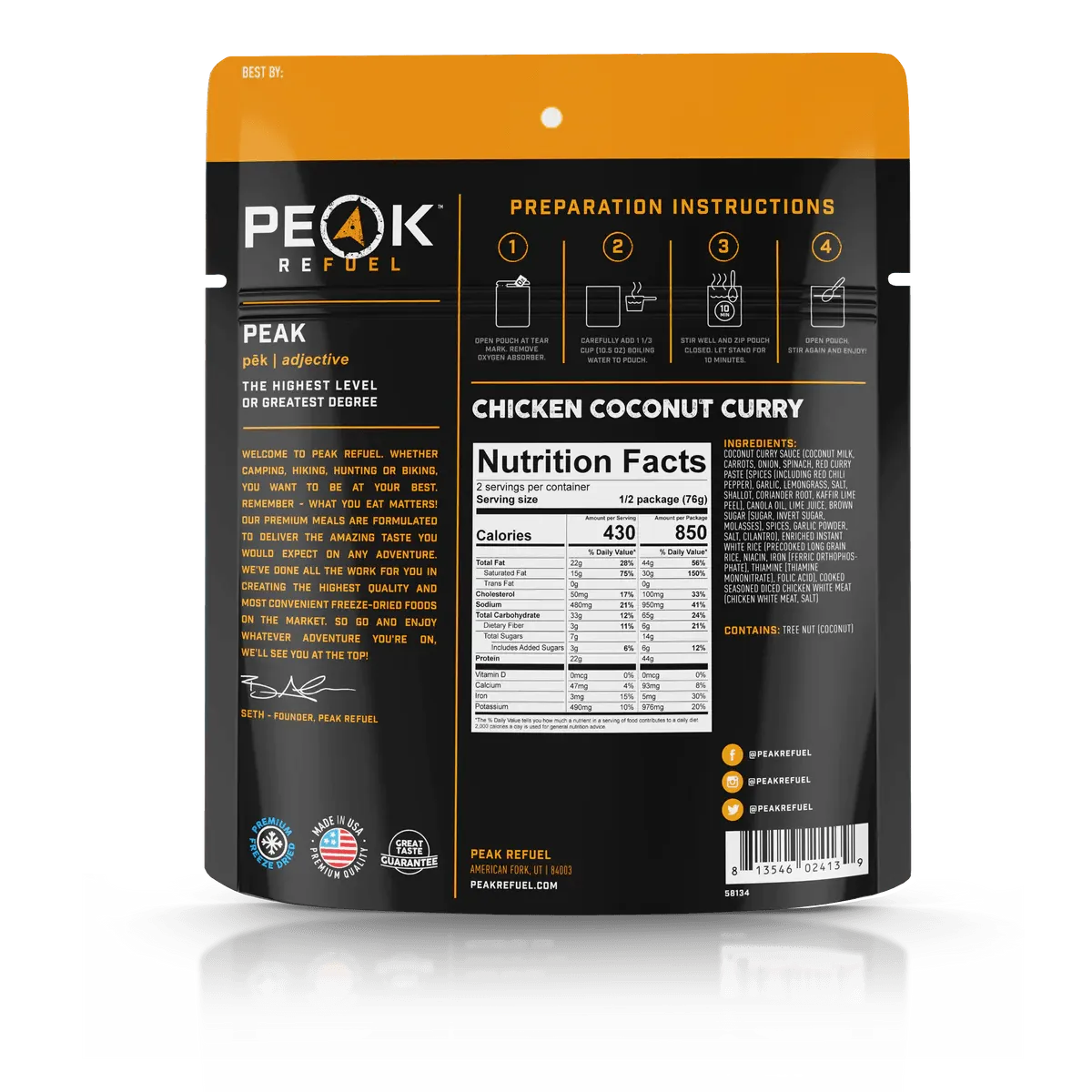 Peak Refuel | Chicken Coconut Curry is backordered and will ship as soon as it is back in stock.