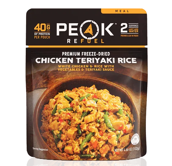 If only takeout delivered to the outdoors...oh wait. Peak Refuel’s Chicken Teriyaki Rice gives you that flavor you crave while adding 40 grams of protein to your day. White chicken breast is chopped and tenderly freeze-dried without any fillers or artificial additives. Now add some fluffy rice, a medley of veggies, and drizzle some teriyaki sauce on top for an Asian-style dinner that you didn’t have to call in. Just add 1 ⅓ cups of boiling water and you’re ready to roll.