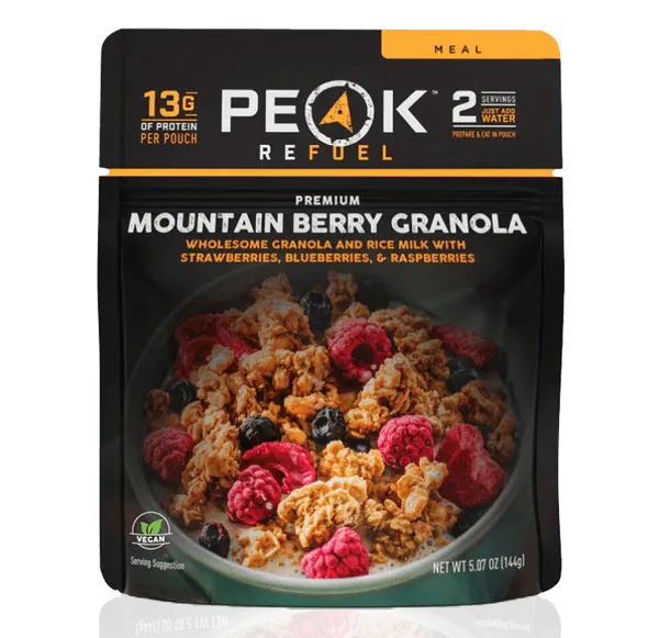 When you’re in the thick of adventure and craving a home-cooked meal, Peak Refuel has your back. Our dairy-free Mountain Berry Granola hits the spot with real fruit, and rice milk sourced from a family farm in the USA. And if you thought granola couldn’t fill you up...think again. With 13 grams of protein and 11% of your daily fiber, just add 1 cup of cold water and you’ll be energized for an entire morning of epic hikes, sketchy climbs, and pushing boundaries.
