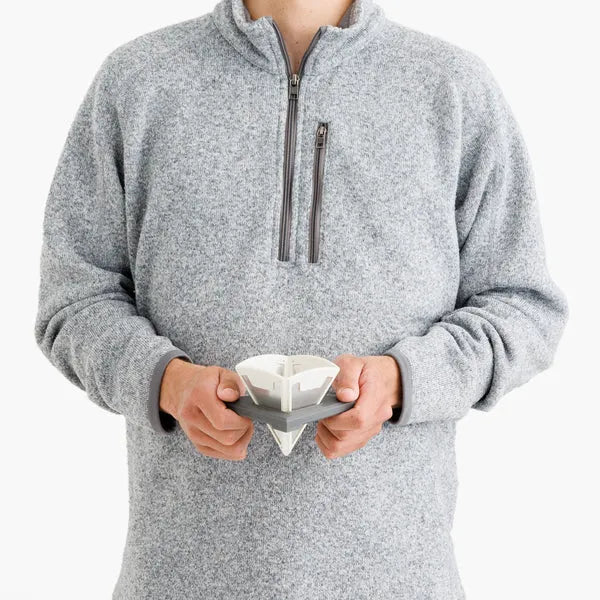 The Frontier Ultralight Collapsible Pour Over folds flat for storage in its polypropylene mount base, then pops out when needed to make a perfect pour-over brew. The easy-to-clean stainless steel mesh filter is sized just right for one serving (approx. 30g) of ground coffee and formed to hold the grounds but filter the coffee oils for a rich, satisfying cup of coffee. The mount base fits most mugs and wide-mouth bottle rims, and the EU food-grade silicone rubber and stainless steel filter unit slides inside the base for easy transport. It even stows nicely in a Frontier Collapsible Kettle.