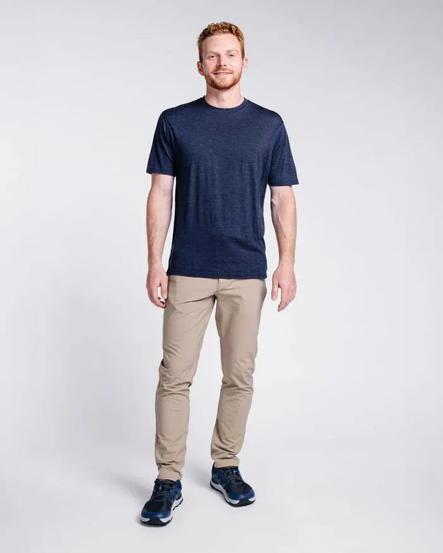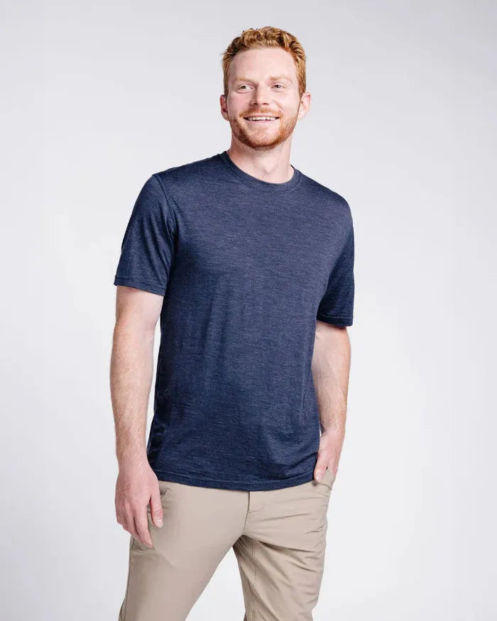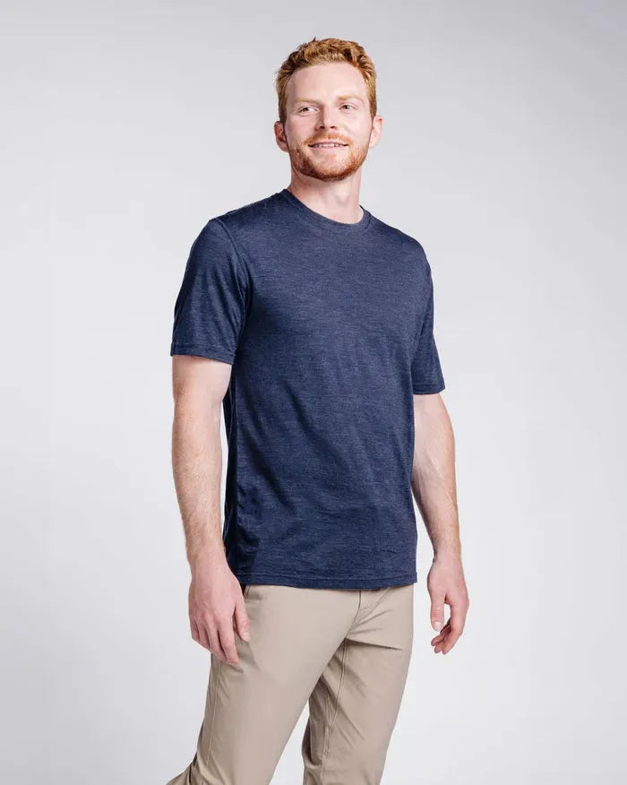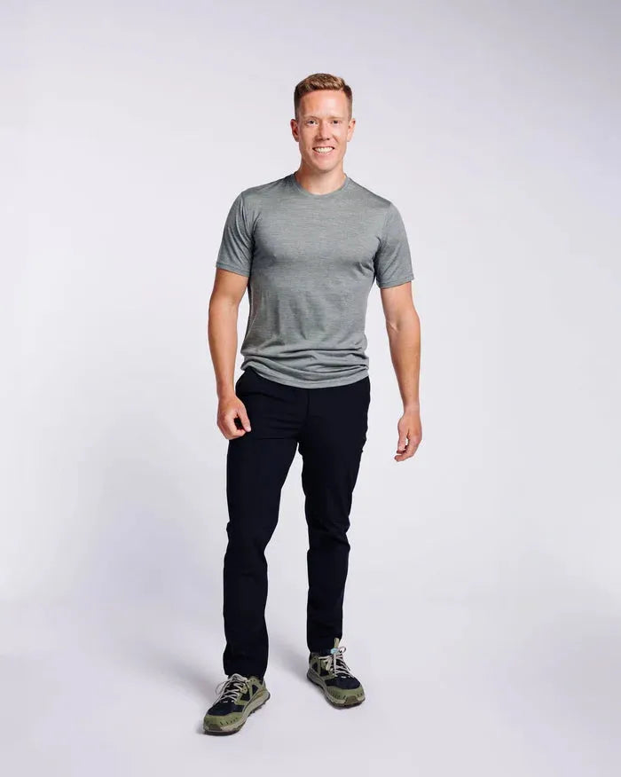 Made from 100% Merino Wool this t-shirt gives you more freedom to explore while lightening your travel bag. Naturally antimicrobial & odor-resistant, merino can be worn dozens of times between each wash. Merino also regulates your temperature in both hot & cold conditions so wherever your trip takes you - this tee will keep you cool when the weather is hot & warm when the weather is not.