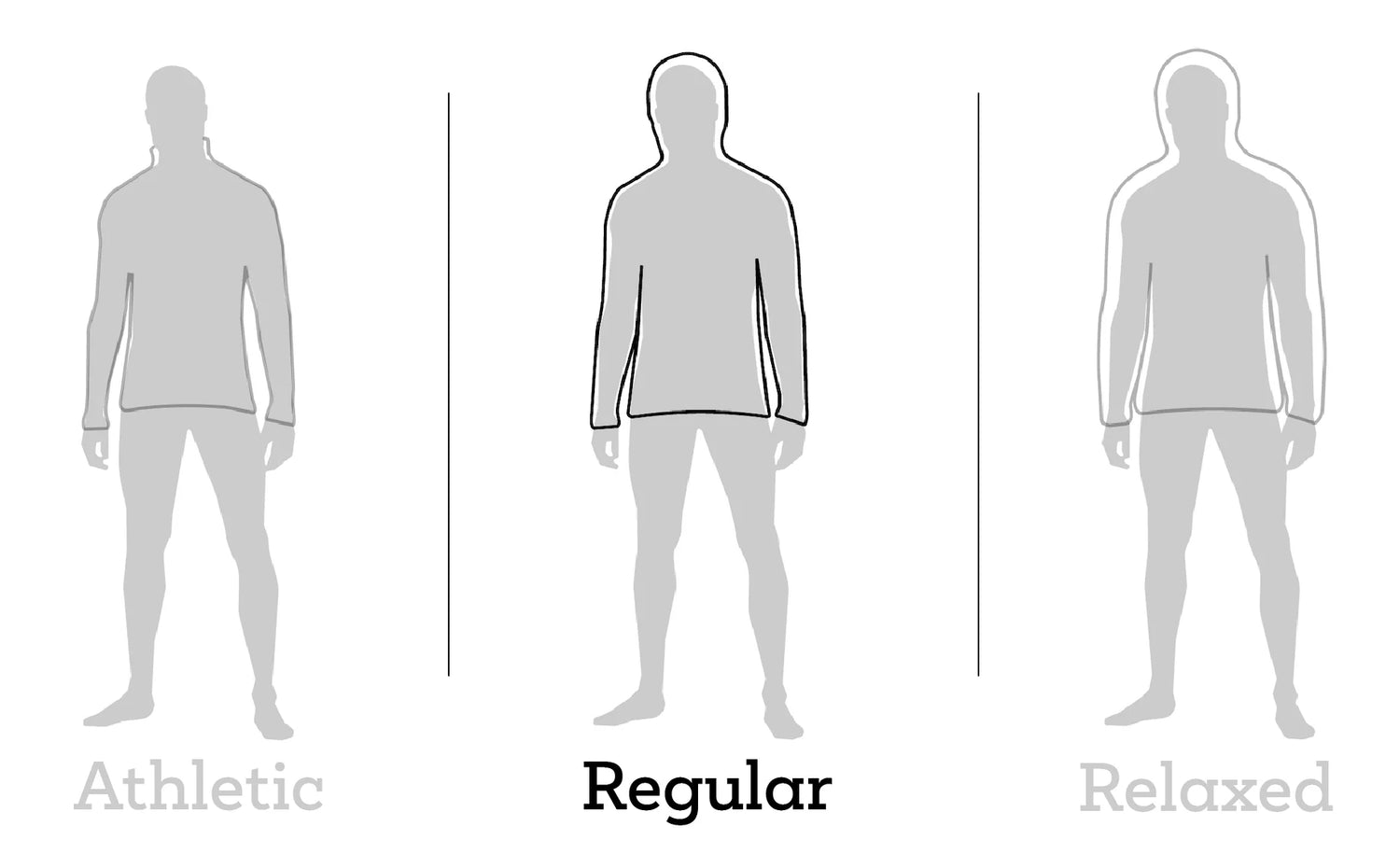 - Regular Fit allows for range of motion without being restrictive. Add a layer underneath and a layer on top if needed