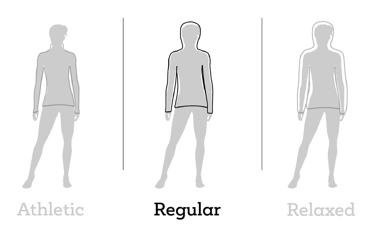 - Regular Fit allows for range of motion without being restrictive. Add a layer underneath and a layer on top if needed
