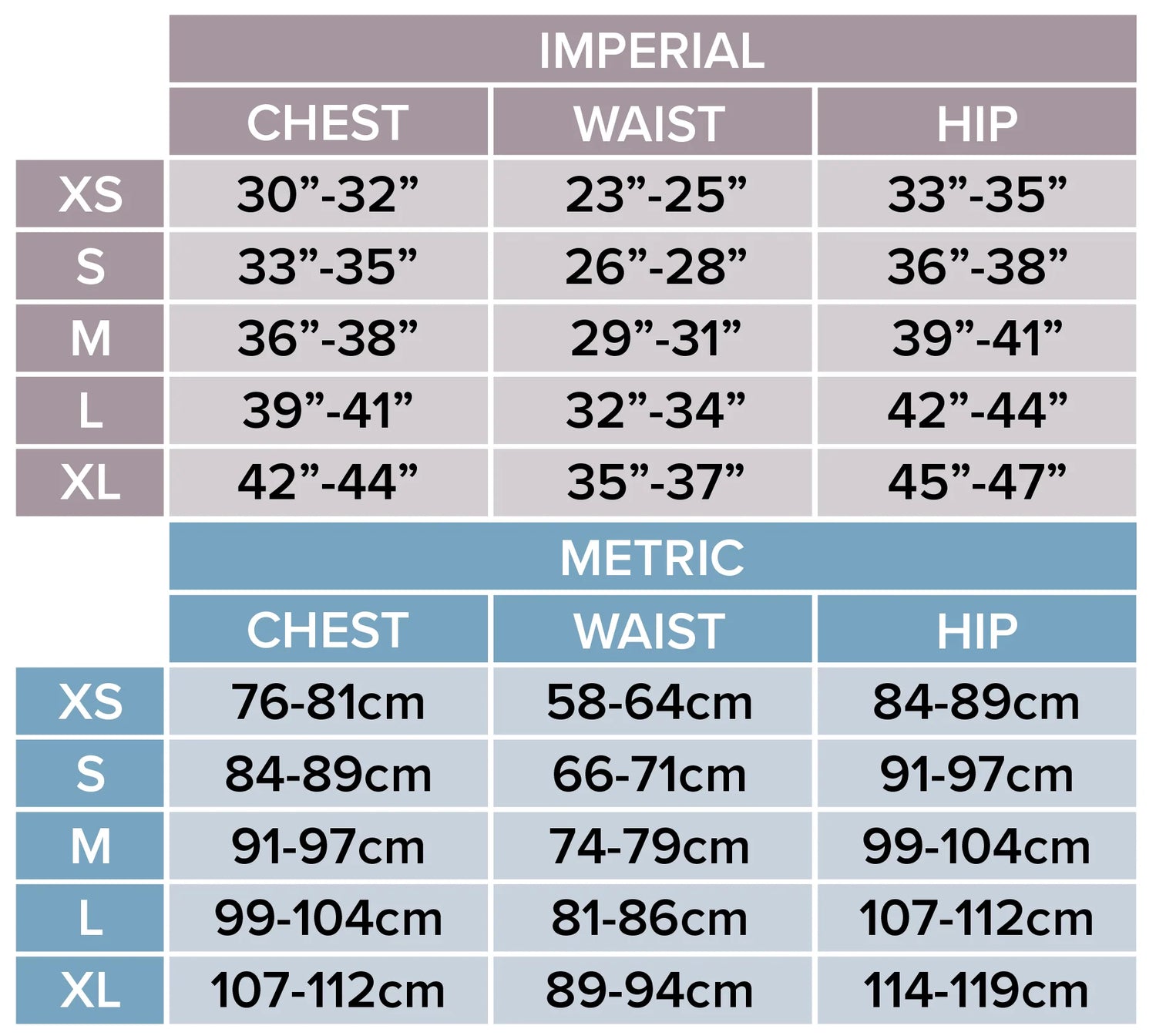 | Hips | 36"-38" | 39"-41" | 42"-44" | 45"-47" |