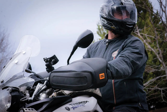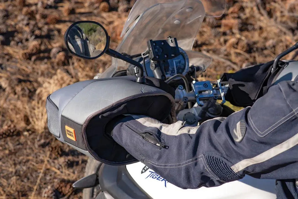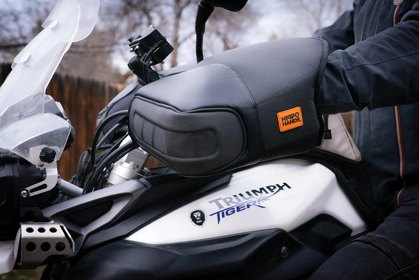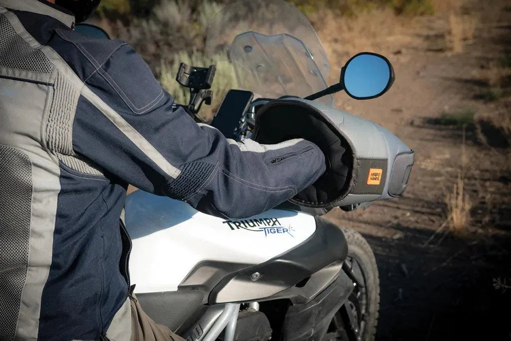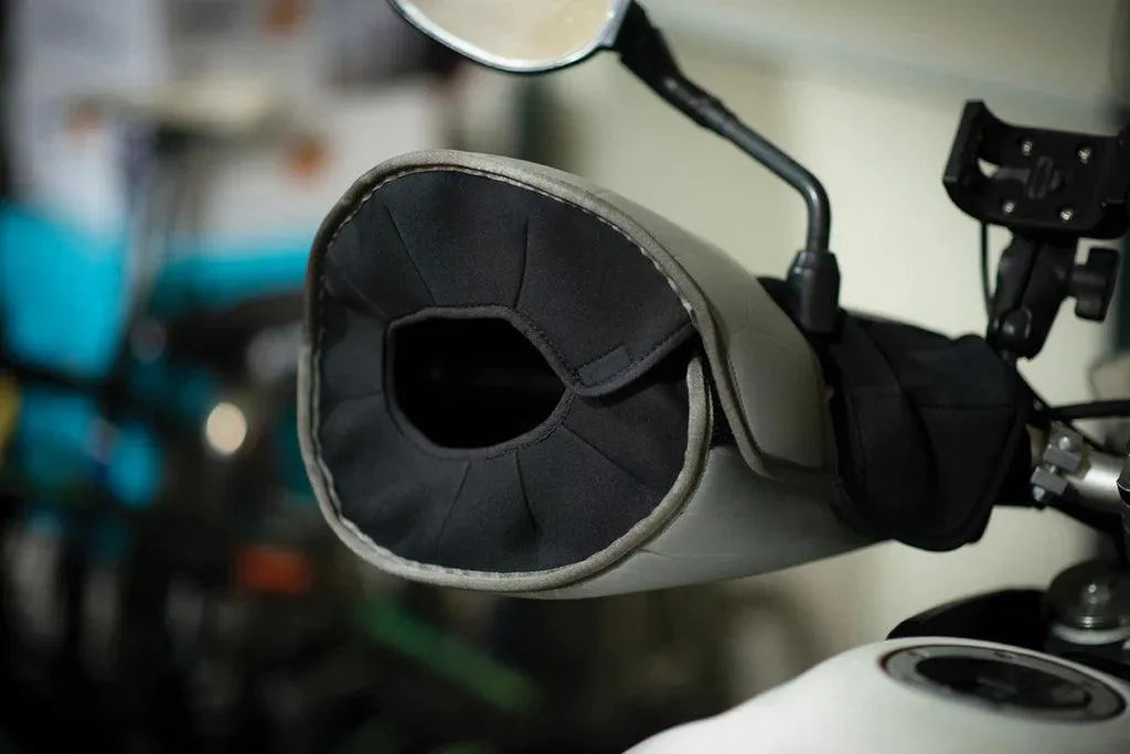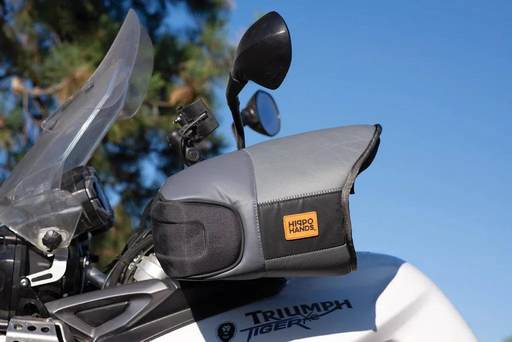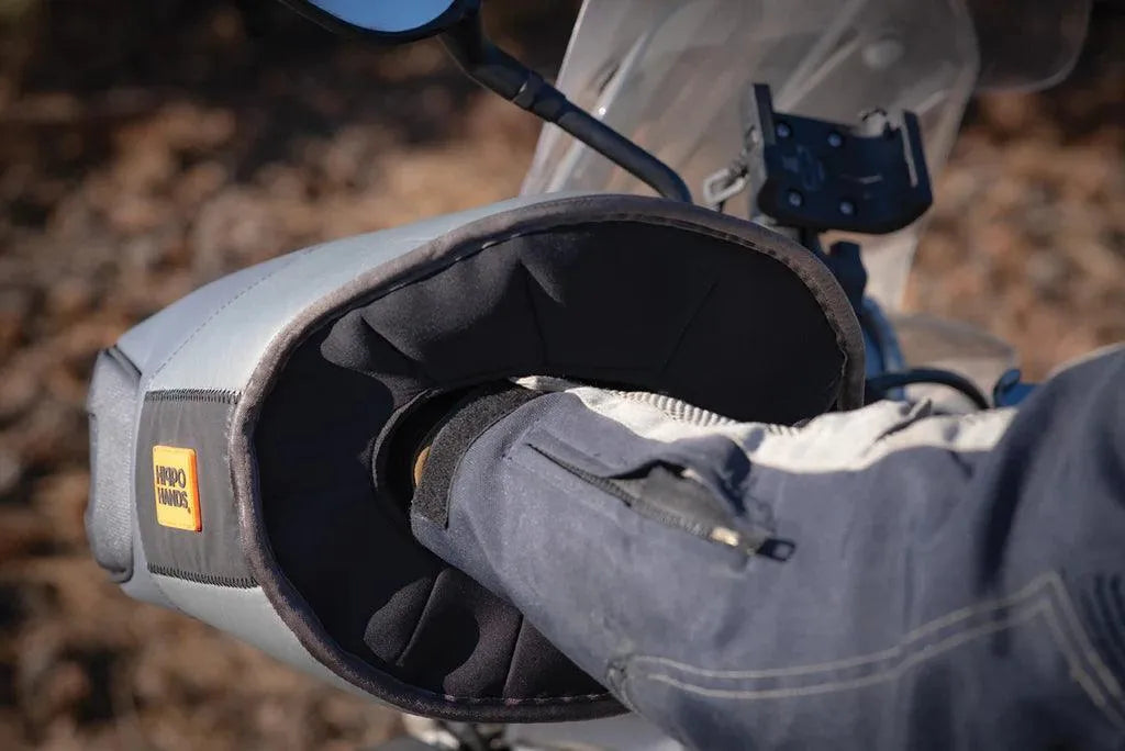 The Alcan™ is a maximum coverage, all-weather hand cover that fit adventure bikes, sport touring bikes, and many others. The Alcan is for riders who embark on cold and/or wet weather rides and tours. These are the absolute warmest hand covers on the market. It may not surprise you that they are covered with HippoSkin™, our waterproof outer shell, and insulated with a generous layer of HippoFat™, a warm, flexible, closed cell foam—both are designed to keep inclement weather away from your hands. The Alcans also have a neoprene cuff around the opening, ensuring a tight fit and sealed off wind and rain. The cuff dramatically limits backdraft air into the area around the controls.