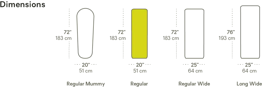| Specs | Regular | Regular Wide | Long Wide | Mummy |