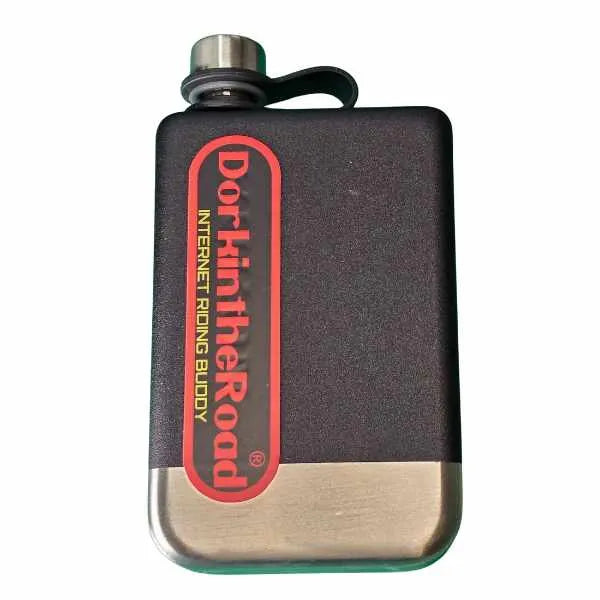 Your purchase includes an “Internet Riding Buddy” sticker for the back side of the flask so no matter how you hold it, the world will know that you are committed to Dorky shenanigans.