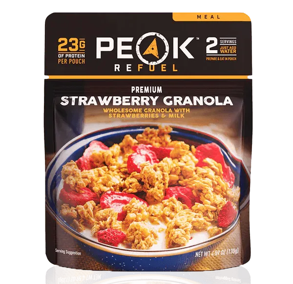 When you’re in the thick of adventure and craving a home-cooked meal, Peak Refuel has your back. Our Strawberry Granola hits the spot with real ingredients sourced from a family farm in the USA. And if you thought granola couldn’t fill you up...think again. With 23 grams of protein and 21% of your daily fiber, just add 1 cup of cold water and you’ll be energized for an entire morning of epic hikes, sketchy climbs, and pushing boundaries.