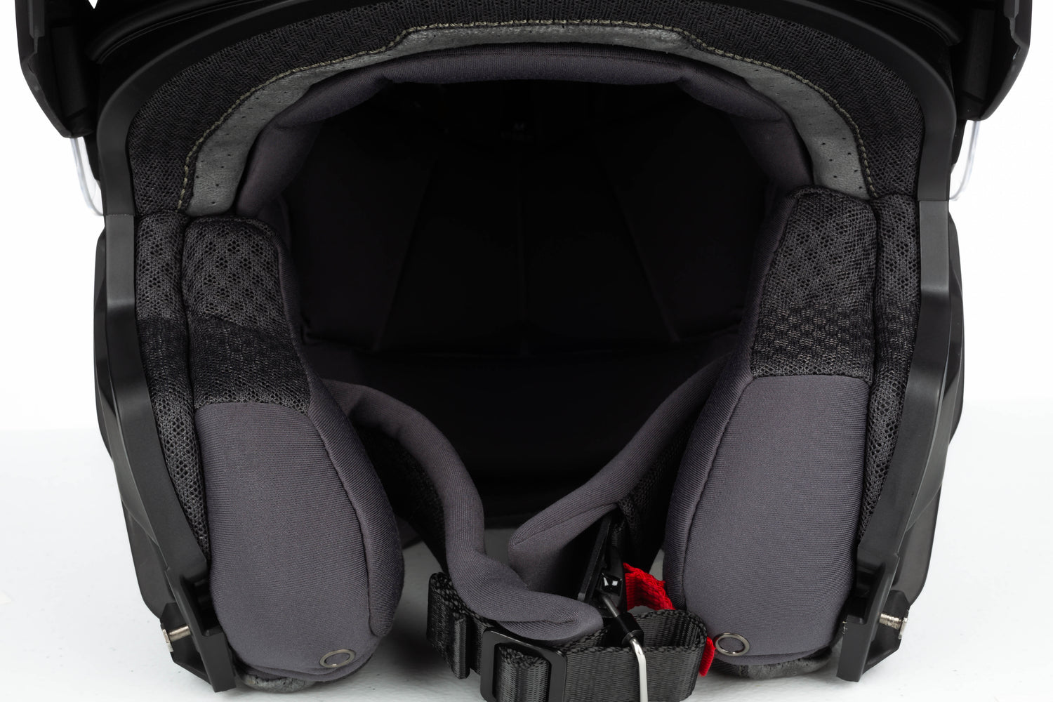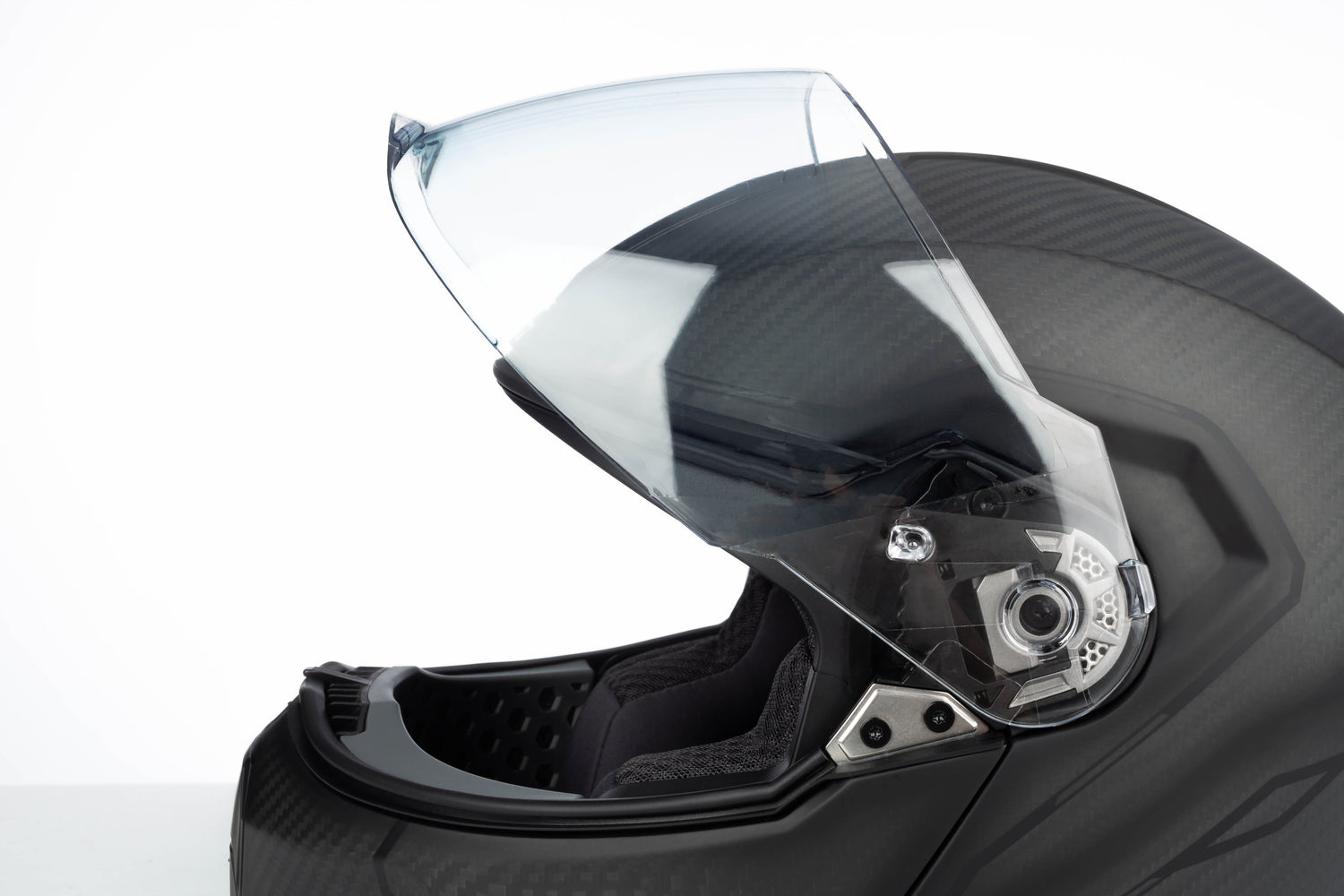 The GT1 Expedition Helmet is the pinnacle of modular touring helmet technology. Advanced KOROYD® + EPS technology for impact absorption and heat management, aerodynamically optimized shell and visor construction, next-gen face shields, and a direct control ventilation system all combine to create unparalleled comfort and protection. A carbon fiber modular chin bar rotates with a brilliantly designed proprietary hinge mechanis with flush-to-shell closure, reducing drag and improving aerodynamics. Ride protected in the most groundbreaking touring helmet ever built