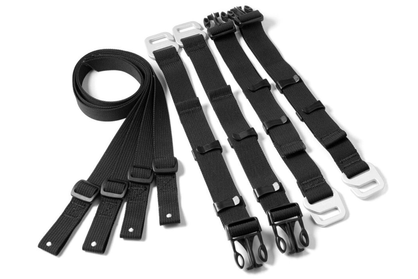 • Easy to fit with quick-release hooks attaching to web loops secured to the bike’s subframe.