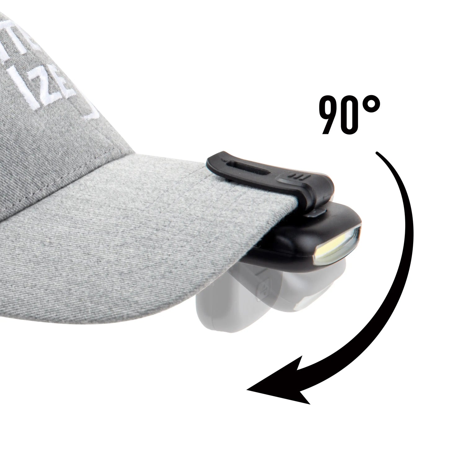 • Clip light body tilts 180° (90° when attached to a hat brim)