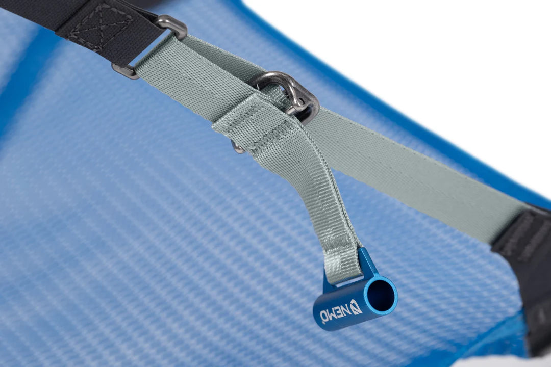 Moonlite has a unique pulley system built into the armrest straps that allows you to easily adjust your sitting position on the fly. Simply pull on the custom buckles and lean back to go from upright at dinner to stargazing after dark. (Pull again while sitting up to return to upright support.)