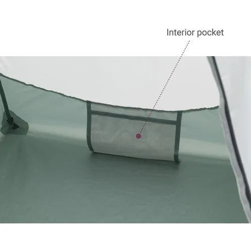 A free-standing aluminum two-pole design allows for quick and easy setup once at the campsite.  A dual-door construction permits entry from either side.  The weatherproof rainfly with two vestibules attaches with buckles to the corners for maximum adjustability and protection from the elements for users and their gear.  Half mesh walls allow for ample ventilation while inside mesh pockets and gear loft provide storage for small personal items. Don't forget to add a footprint to protect your tent floor.