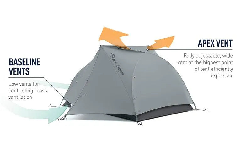 • Apex Vent - at the highest point of the tent, this oversized vent efficiently expels warm air to prevent condensation and can be easily zipped shut from inside the tent.