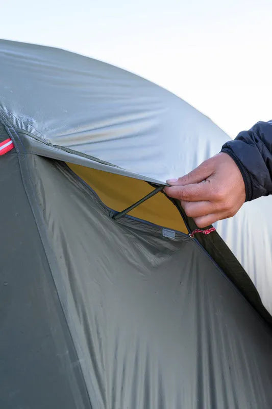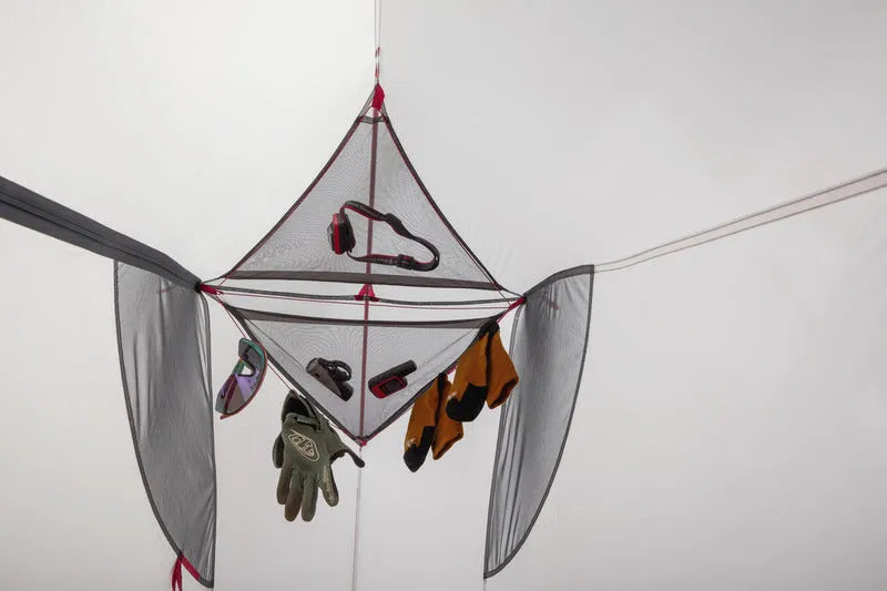 The Inside: The true rectangular floor (no foot taper) is large enough for all your gear and 38 inches (0.97 m) of headroom lets you sit up comfortably. The tent body is a blend of mesh and solid fabric that provides airflow, privacy and weather protection. The no-curve tent door features zippers that are easy to use with one hand. It also zips closed to a single point so you always know where to open the door, even in the dark. Tech-friendly pockets feature cable ports at the corners for charging cords, and large overhead gear loft pockets are perfect for gloves, sunglasses and other quick-access items. An interior clothesline and optional but included exterior clothesline provide ample space to hang damp gear.