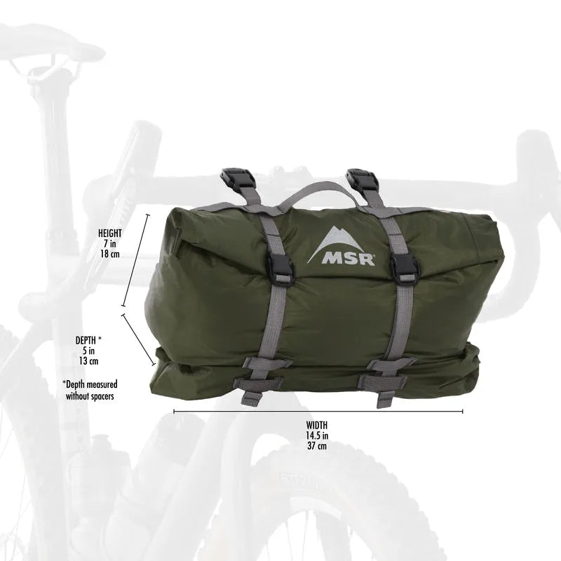 - Waterproof Handlebar Bag: Designed to attach seamlessly to flat or drop bars, the streamlined tent bag is seam-taped and waterproof.
