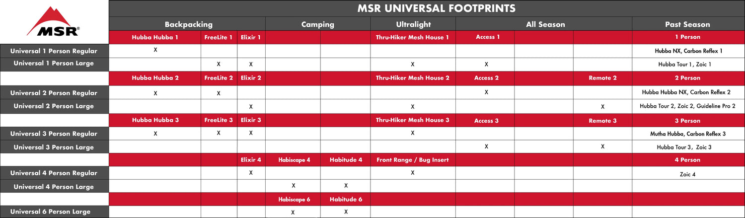 The Universal Footprint can help protect your tent floor and extend the life of your tent. Designed to keep your tent floor clean, dry and better protected from wear-and-tear, the Universal Footprint comes in a variety of size options to fit MSR tents.