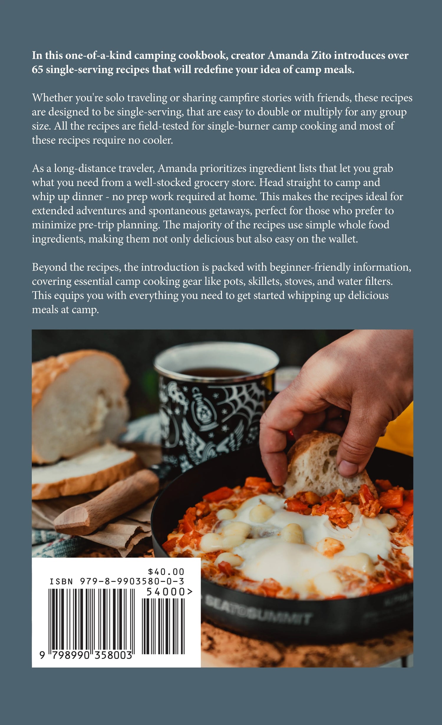 In this one-of-a-kind camping cookbook, creator Amanda Zito introduces over 70 single-serving recipes that will redefine your idea of camp meals.